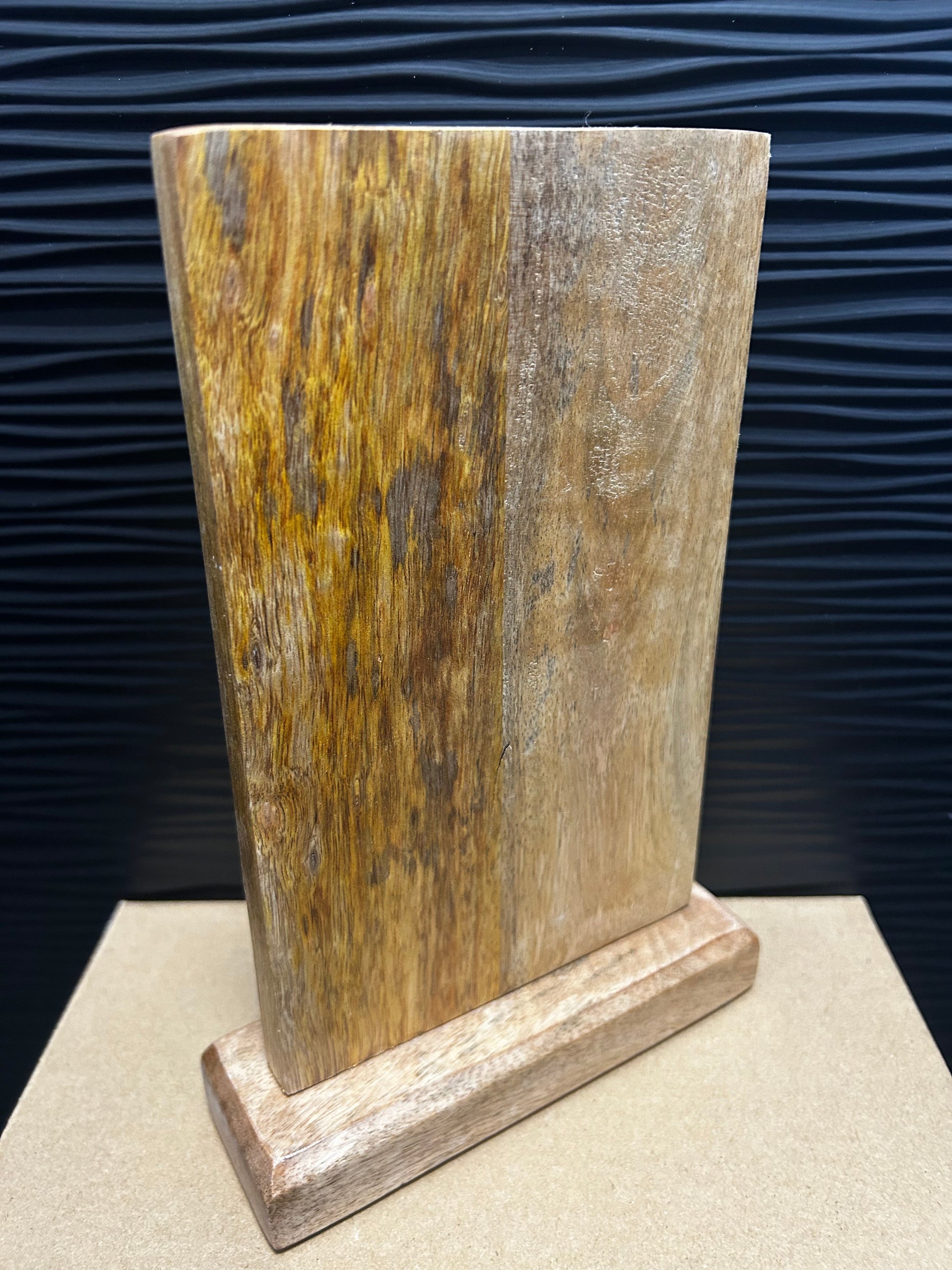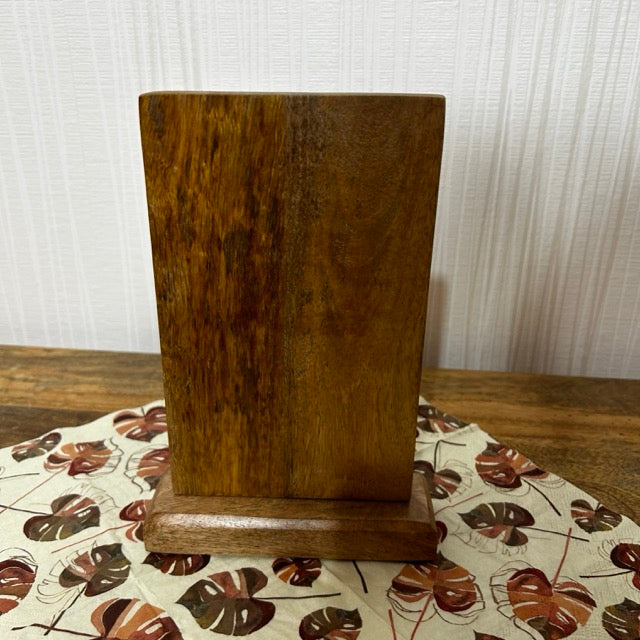 Dieser stabiler Aufsteller bringt persönliche Note in Küche, Wohnzimmer oder Regal. Hochwertiges Mangoholz fühlt sich edel an und passt zu jedem Stil – pure Wertschätzung!